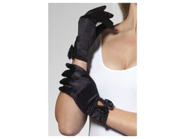 In completarea unui costum, va recomandam manusile scurte, negre cu fundita, in marime universala, ca un accesoriu elegant pentru doamne. Manusile negre se pot asorta oricarei tinute.